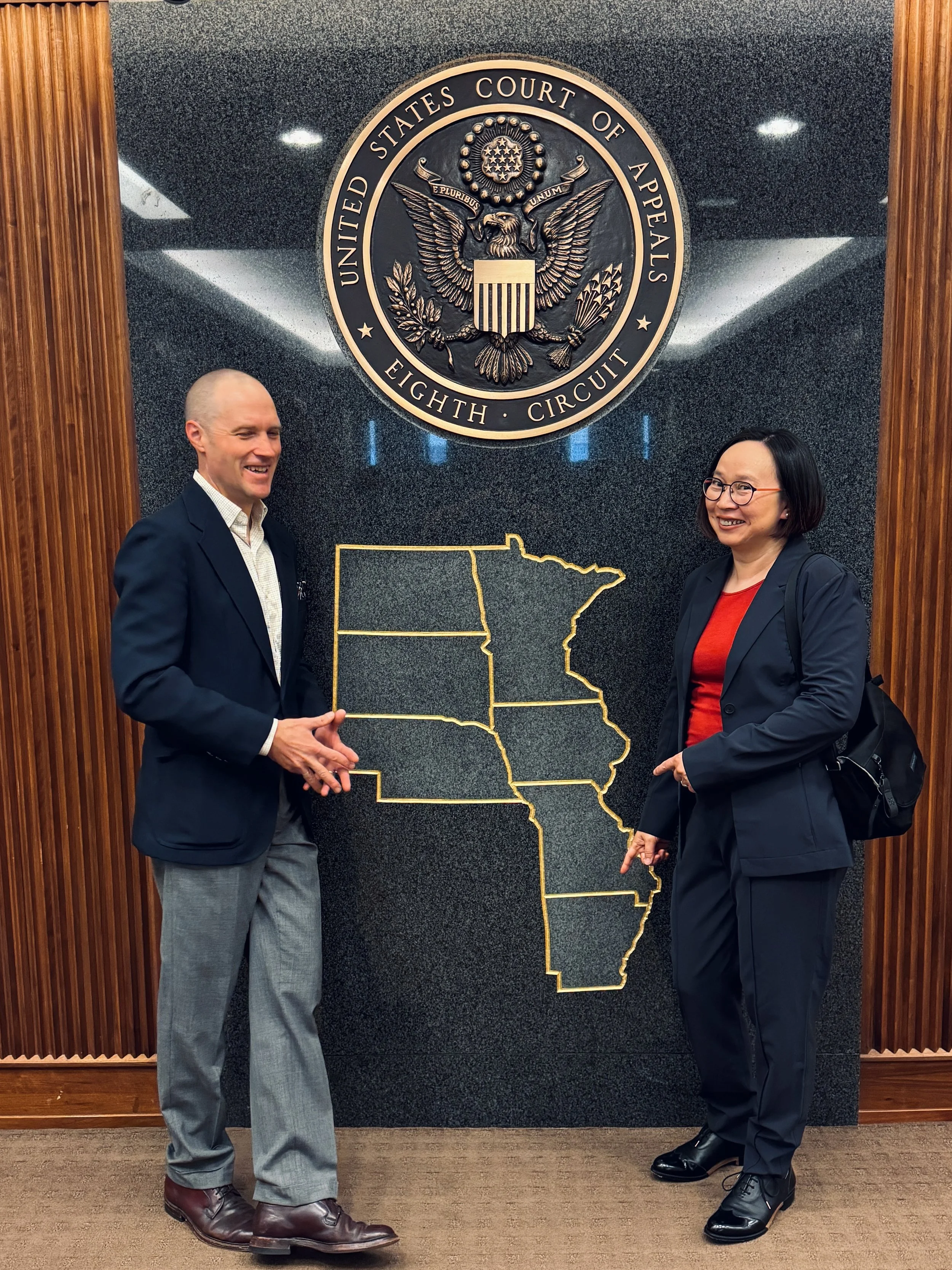 I attended the Eighth Circuit Court hearing for the lawsuit against Iowa's book banning law in St. Paul, MN. Here I am with Andrew Karre, editor of many banned books including mine.